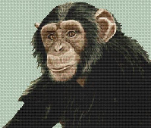 Almost Human is a chimpanzee cross stitch chart based on the artwork of Catherin McMillian.