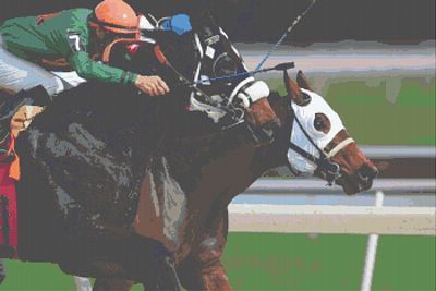 And They're Off! is a race horse cross stitch chart based on the photography of Jeff Griffith that will be: