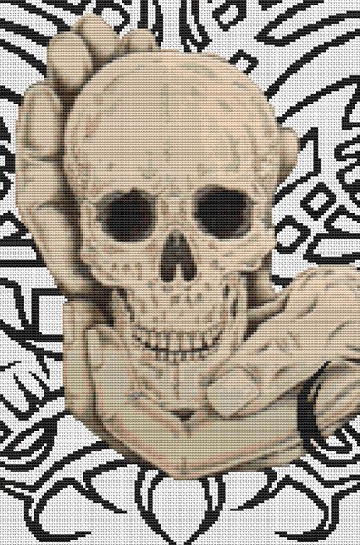 Circle of Life is a skull cross stitch chart based on the artwork of Ronnie Lawrence.
