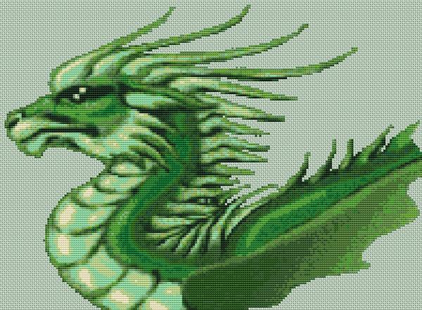 Crested Dragon is a fantasy cross stitch chart based on the artwork of Dee Dreslough.