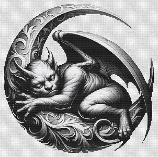 Gargoyle is a counted cross stitch chart based on the artwork of Mo Farrelly. This fantasy cross stitch design will be: