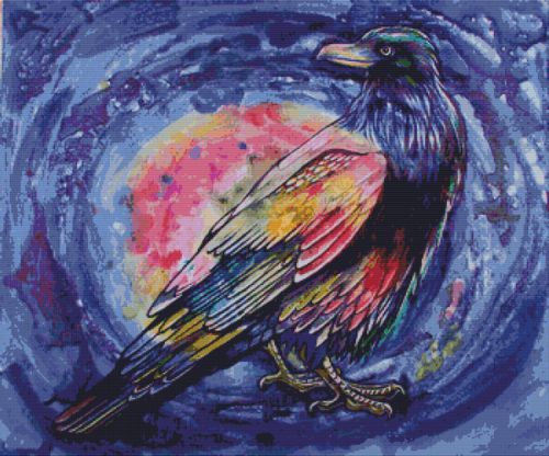 Rainbow Raven is a fantasy bird cross stitch chart based on the artwork of Leah Jakusovsky.