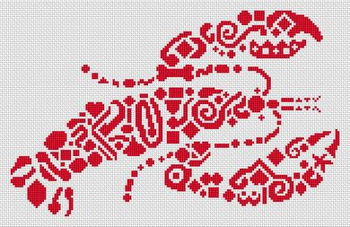 Tribal Lobster is a monochrome cross stitch chart that is: