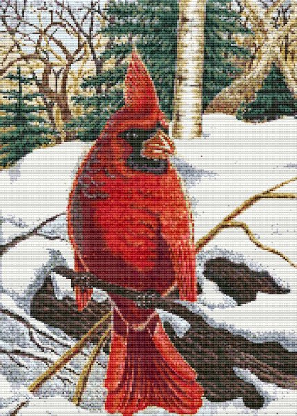 Winter Cardinal is a bird cross stitch chart based on the artwork of Brandon Salamone.